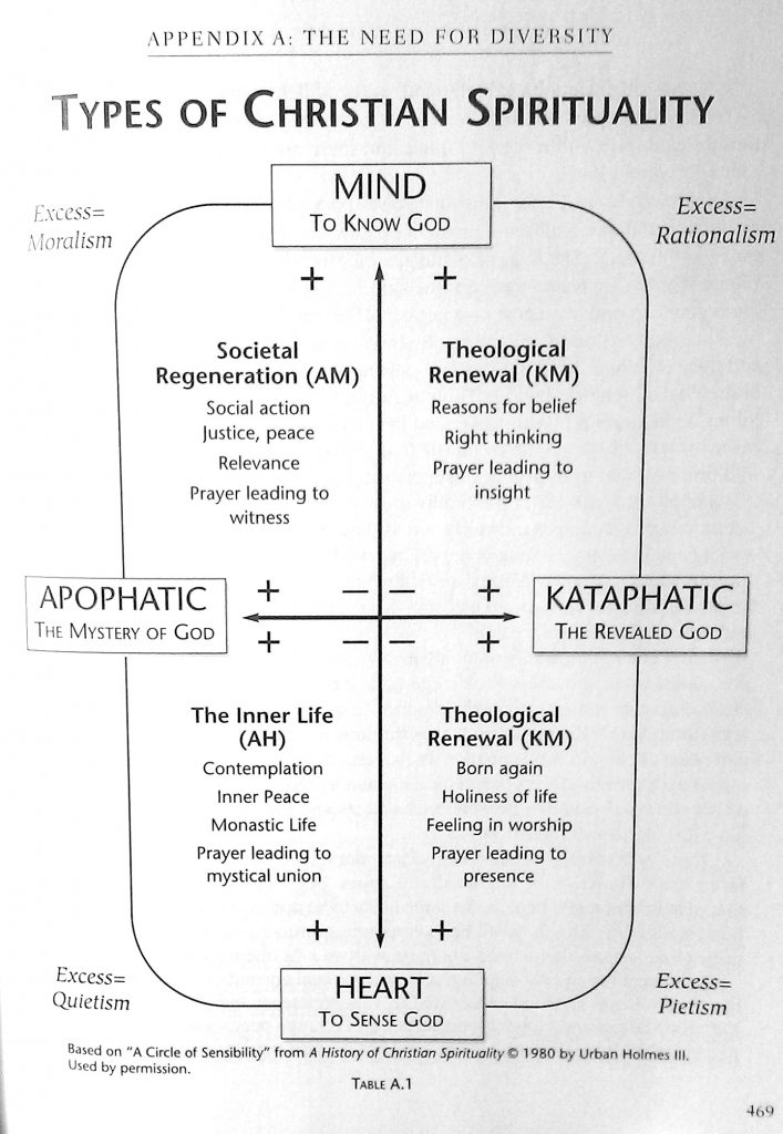 A chart that maps the types of Christian Spirituality from Conformed to His Image by Kenneth Boa