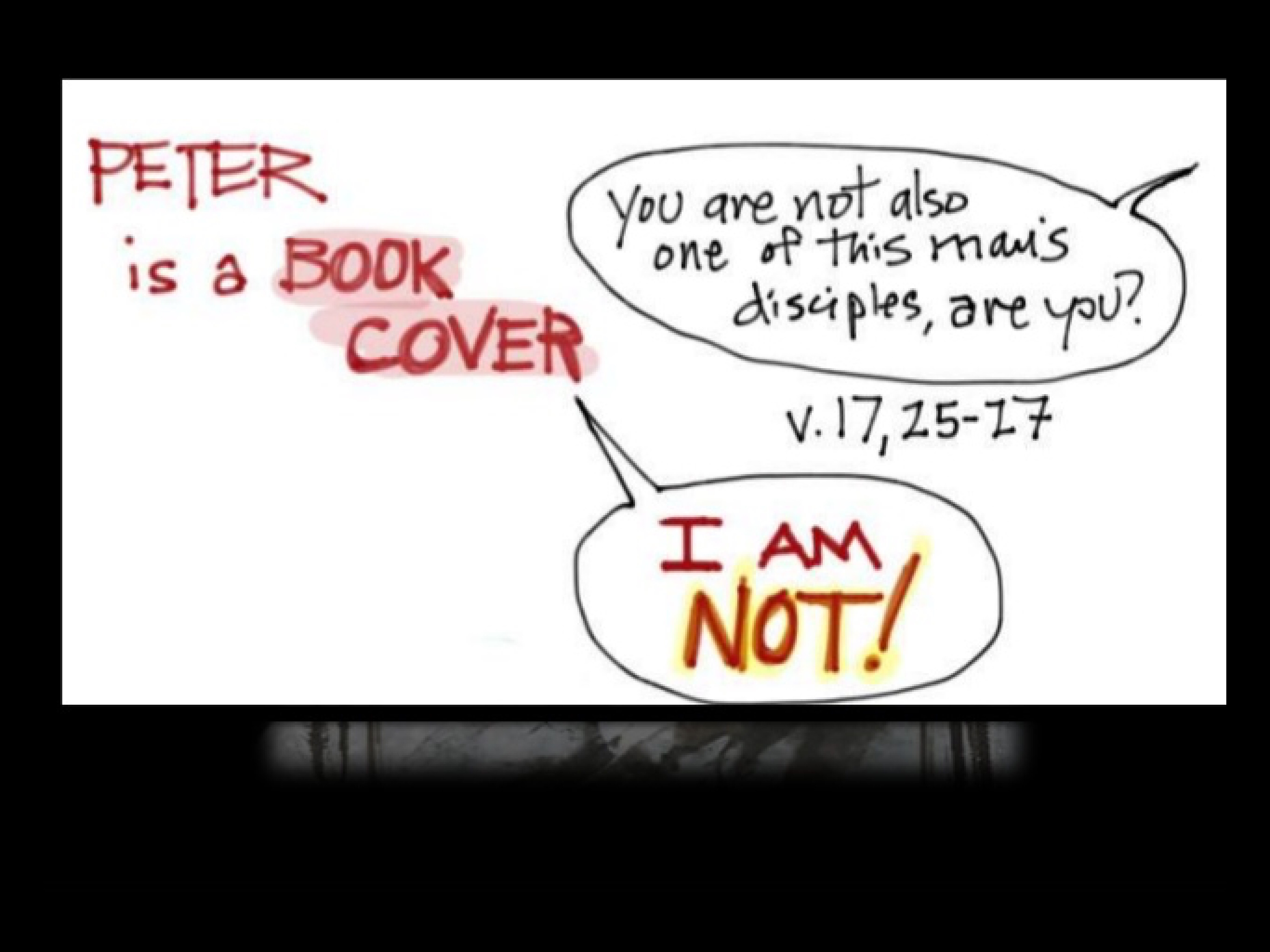 Now let’s see how Peter fairs in his trial. In verse 17, the servant girl looks at him and says, “You’re not one of his disciples, too, are you?” Peter says, “I am…not.”