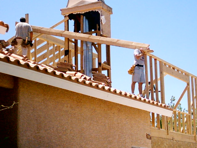 Then we started to work on the second level and things got interesting. We had to tie the roof line into the existing roof, so the geometry was tricky. I hate math, and I’m not much of a construction man, so I was completely at the mercy of the framer (without the guidance of the general contractor, remember). The framer convinced me that the only way we could make this work was to extend the roof in such a way that the outside wall of the room would only be six-feet tall.