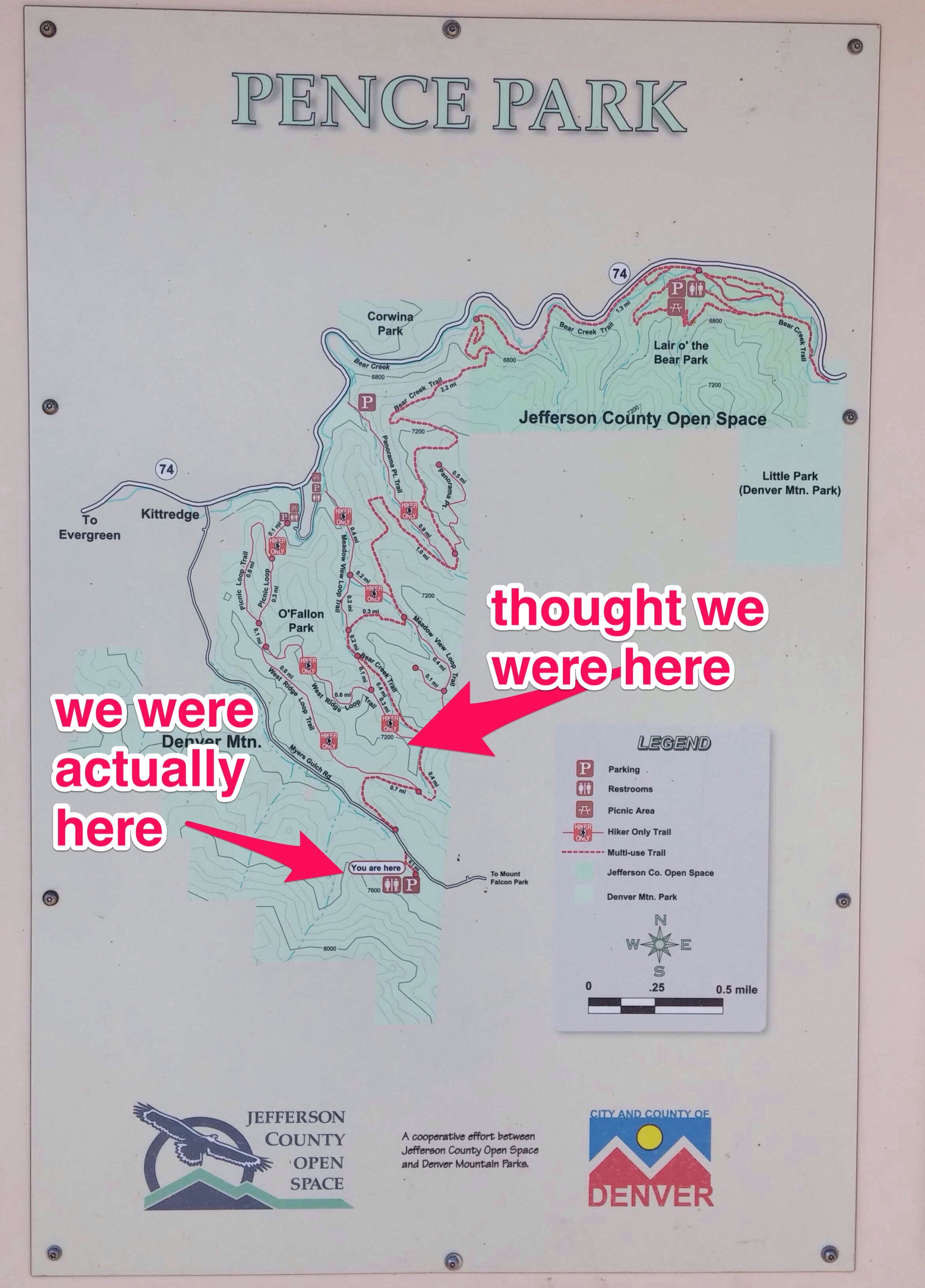 I went on a hike in the Rockies yesterday. My niece took us to Pence Park. It was a place she had never been, so we were all ready for an adventure. I took a picture of the map that was on the stand at the trail head, just to get a sense of where we were going.