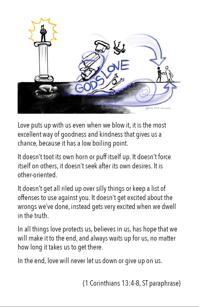 Love puts up with us even when we blow it, it is the most excellent way of goodness and kindness that gives us a chance, because it has a low boiling point.