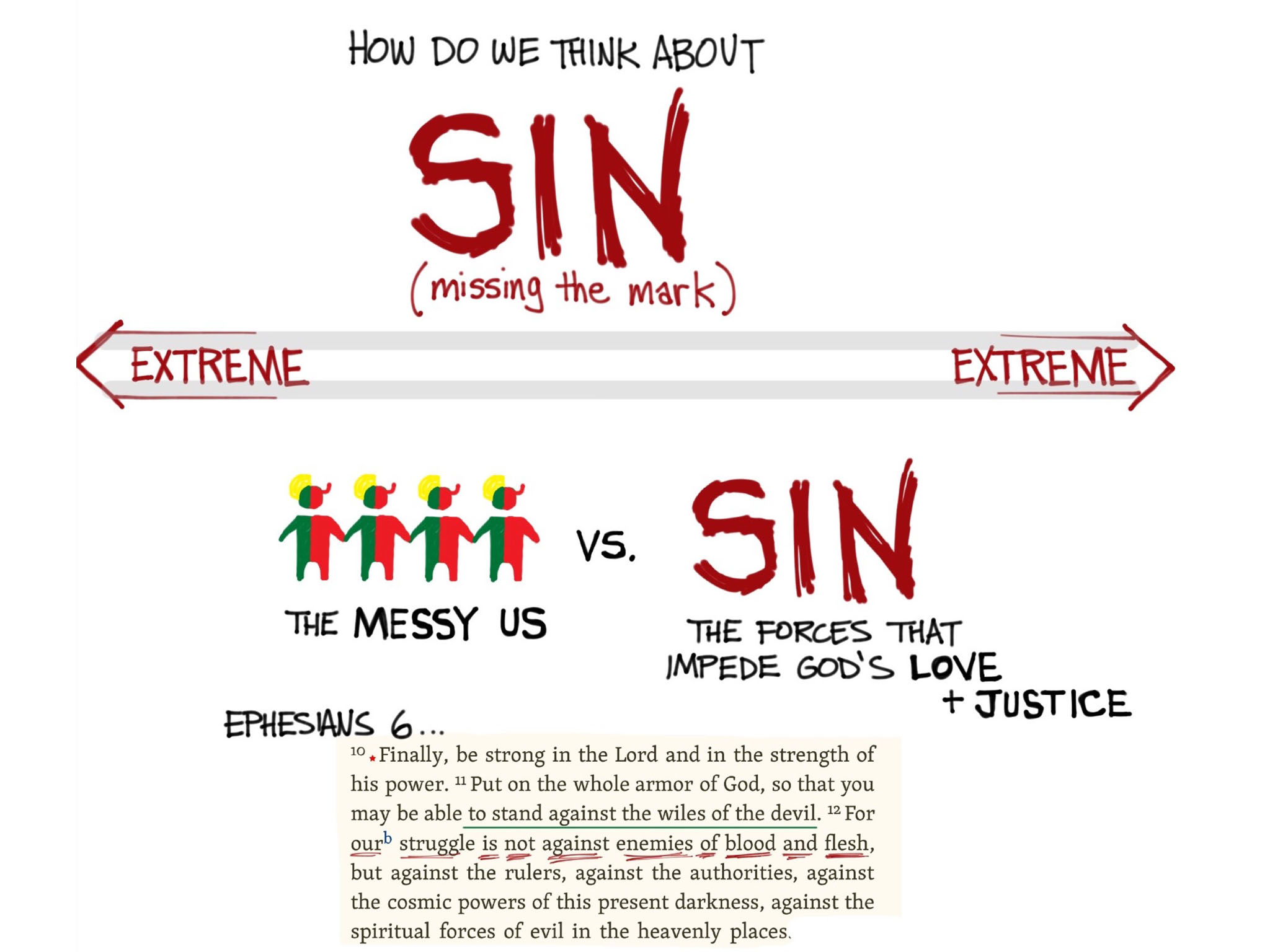 What if it isn’t “us vs. them” but is “us vs. Sin?” We–all of humanity–are a messy, mixed bag of righteous and sinful. Martin Luther said that we are simultaneously saint and sinner. The Apostle Paul said, in Ephesians 6:10-12 that our enemy is not other humans (blood and flesh) but against the forces of evil at work in the world. We must stand against Sin and help each other to be set free from the chains of destructive behavior.