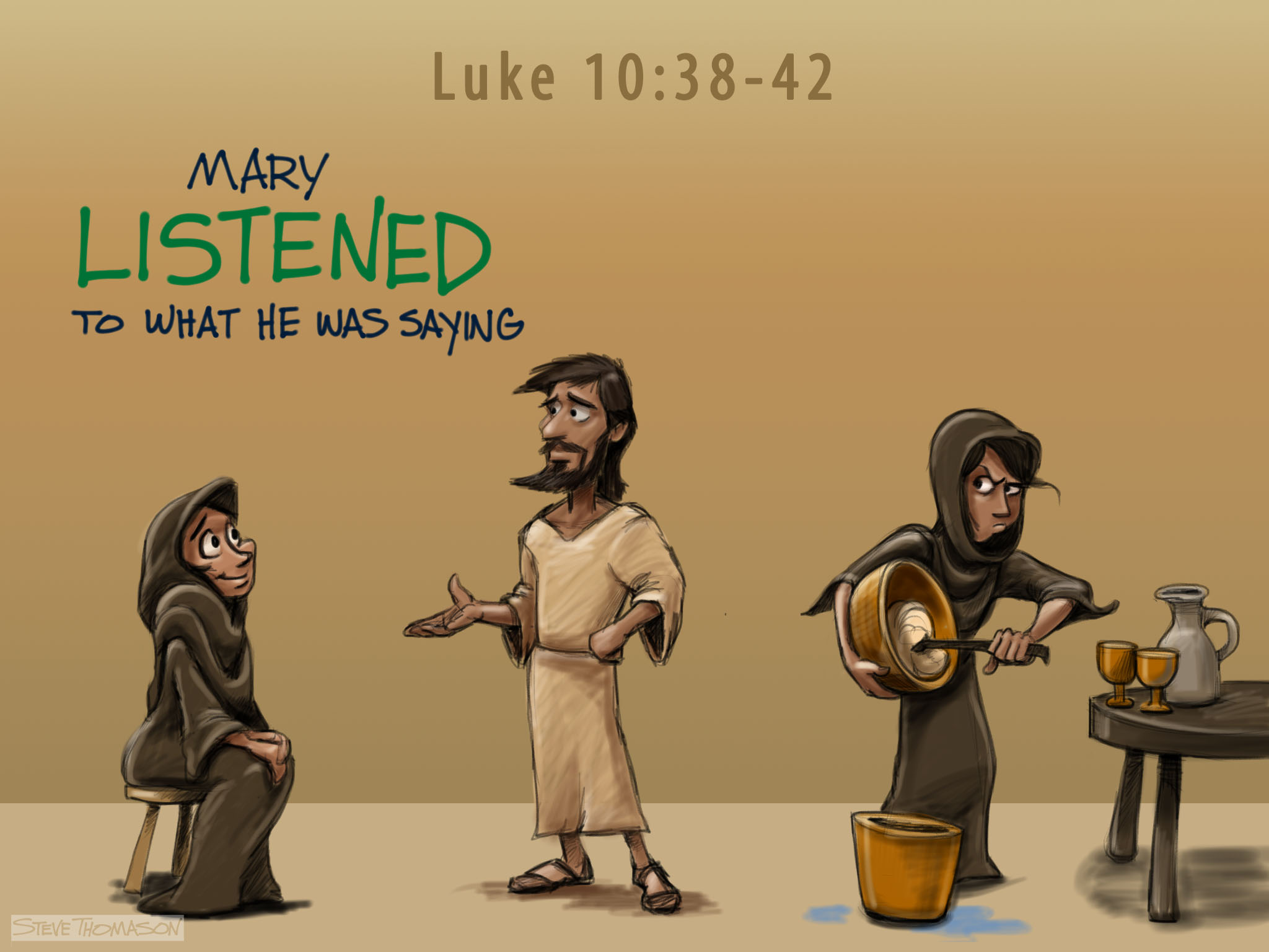 This presentation tells both stories through pictures, and links them by the words listening and distracted. What distracts us from listening to God’s Word? What does is it look like to listen to God’s Word? What is Jesus telling us to do?