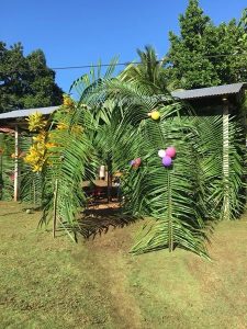It was then that I noticed that two palm branches had been specially formed into an archway and the whole building was decorated with balloons. The village had decked that place out for our arrival.