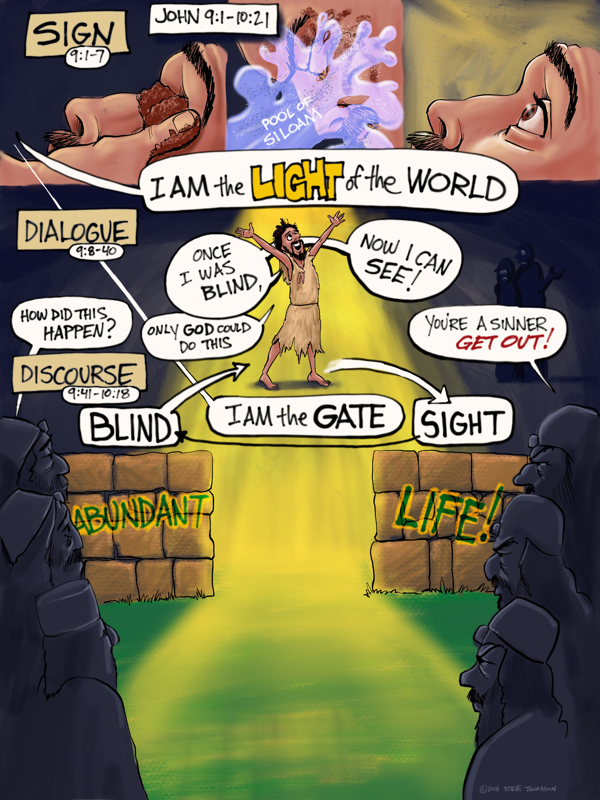Here is where many preachers and lectionaries make a mistake. John 9:41-10:21 are not a new pericope in which Jesus uses the Gate and Shepherd metaphor. These verses are actually the discourse that Jesus gives to explain the sign.