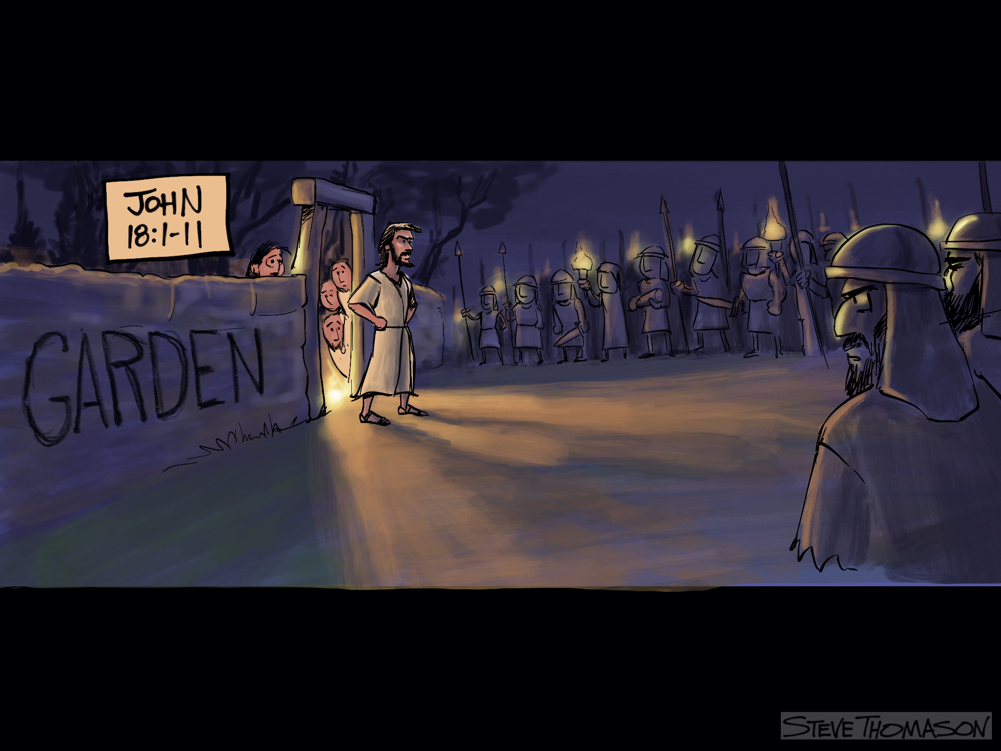 The Narrative Lectionary brings us to the story of Peter’s Denial in John 18:12-27. I have chosen to start in John 18:1 with the scene of Jesus’ arrest. I think it is an important framing for the story. Below are my illustrations. Feel free to use them in your preaching or teaching. Enjoy!