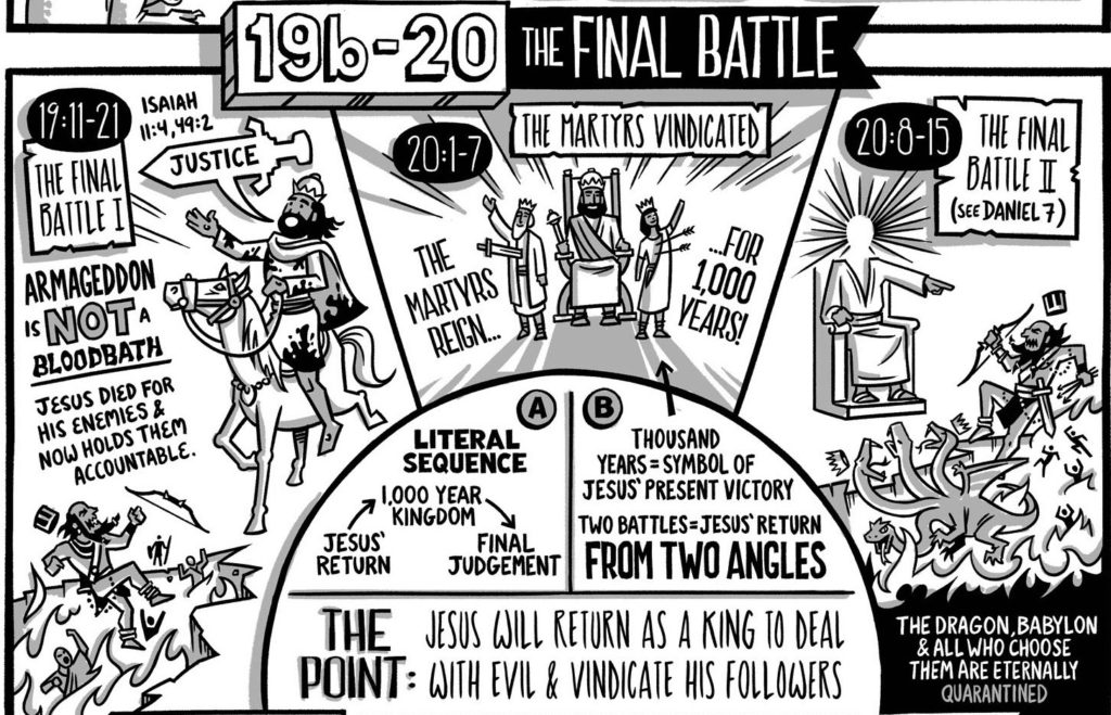 The main reason people justify Jesus-violence is due to a misunderstanding of the metaphors and symbolism of Revelation. Look at Revelation 19:11-21. At first glance it looks like Jesus rides in and kicks sinner butts.