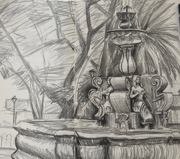 Then I had another hour before I had to return so I did a pencil sketch of the fountain in Central Park.