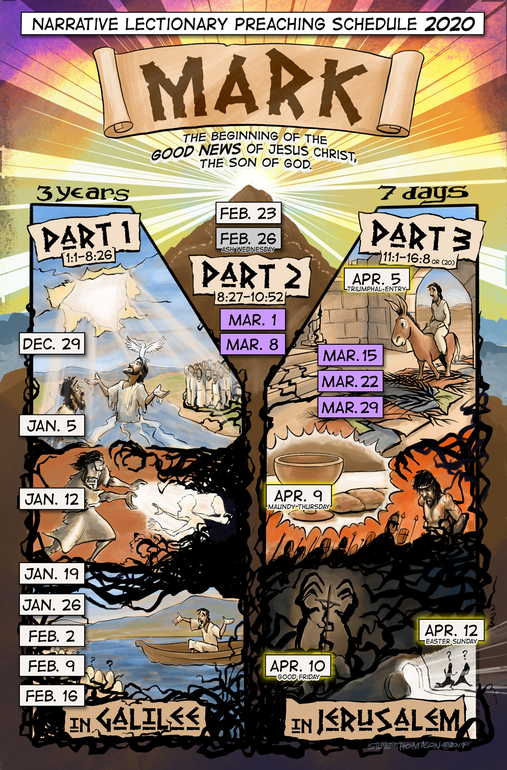 Join the journey from January – April 2020 as we follow the Narrative Lectionary through the Gospel of Mark. Each week a new page of this interactive graphic novel style visual commentary will unfold.