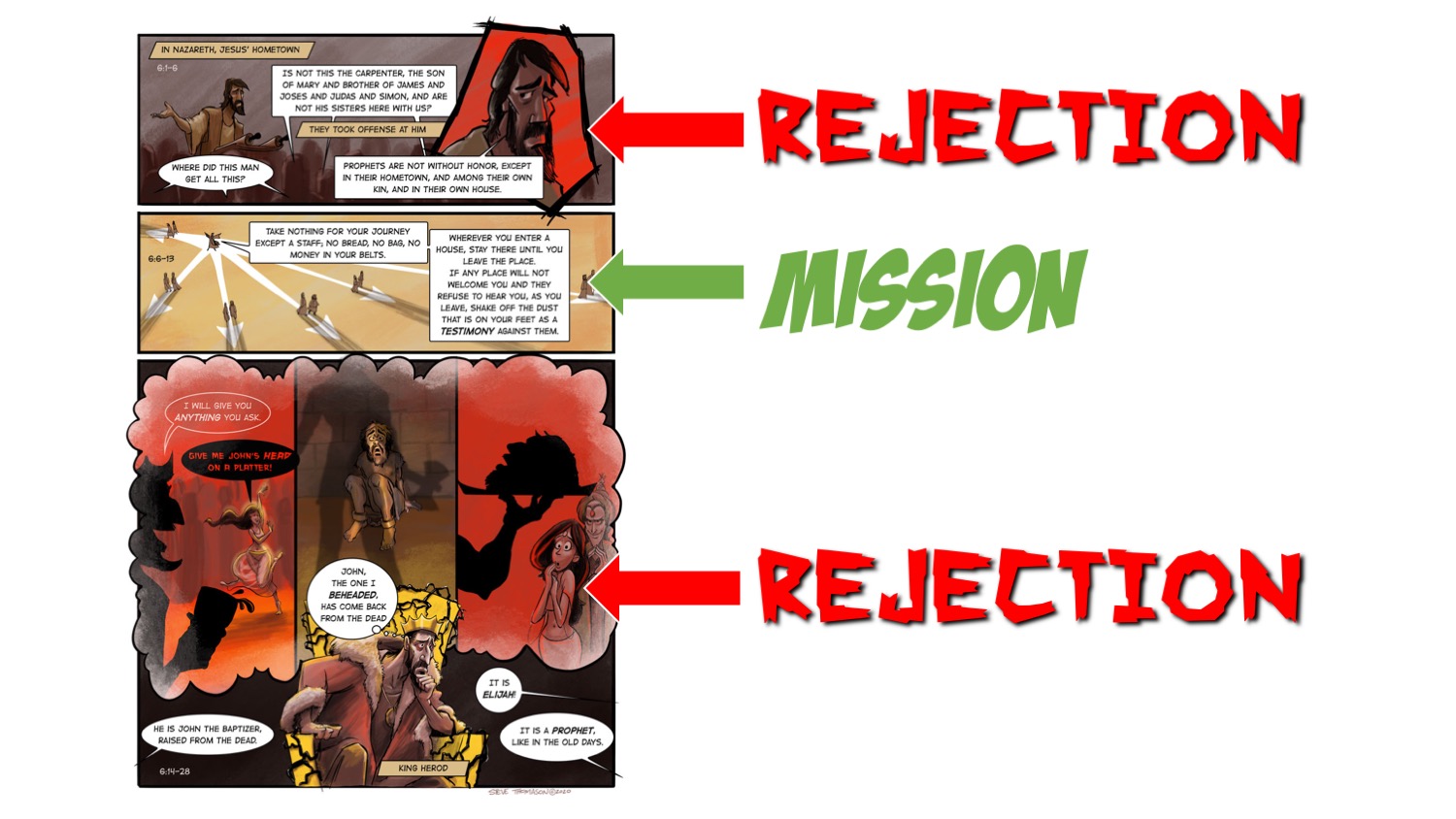 We are preaching from Mark 6:1-29 in the Narrative Lectionary this weekend. I like to call this passage a missional sandwich with rejection bread. The mission of the church is tucked between two stories of how Jesus and the Good News of the Kingdom is rejected in different contexts for different reasons.