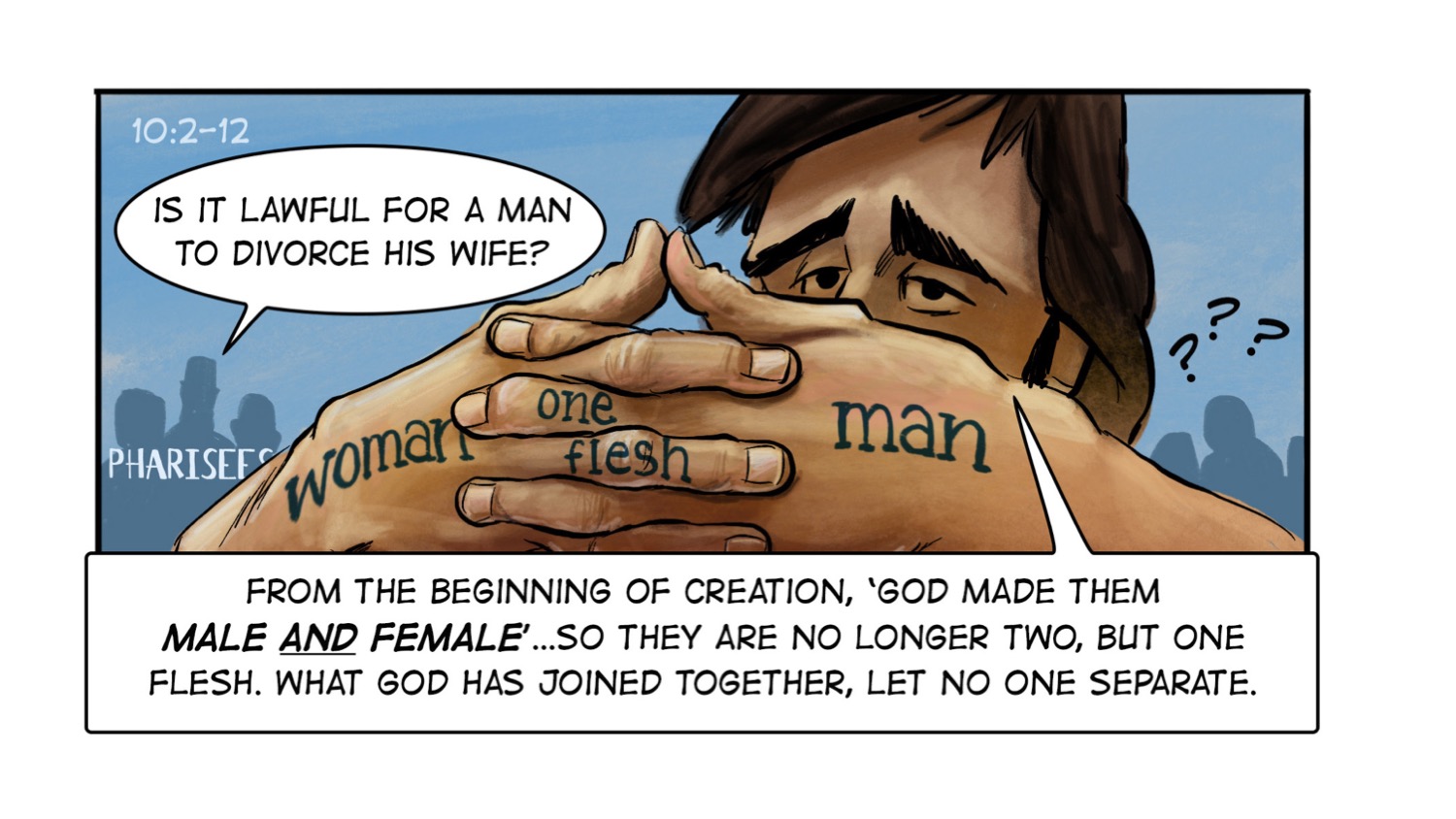 It is important to note that Jesus goes back to creation and highlights that God created humanity as male AND female. They are ONE FLESH, not two species.
