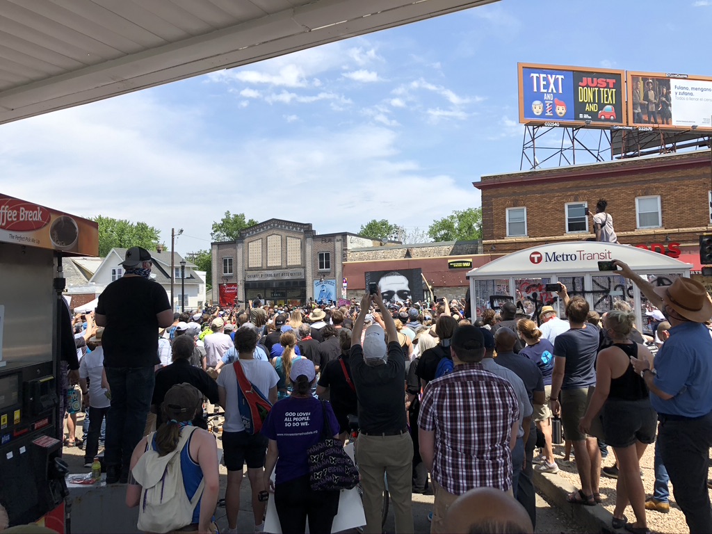More than 1,000 clergy—of all faith traditions—gathered in the parking lot of the Sabathani Community Center and marched down 38th street to Chicago, to the spot where George Floyd was murdered. We gathered around that now sacred spot and flooded the intersection. I was too far away from the speakers, so I couldn’t hear what they were saying. I simply stood and observed and prayed.
