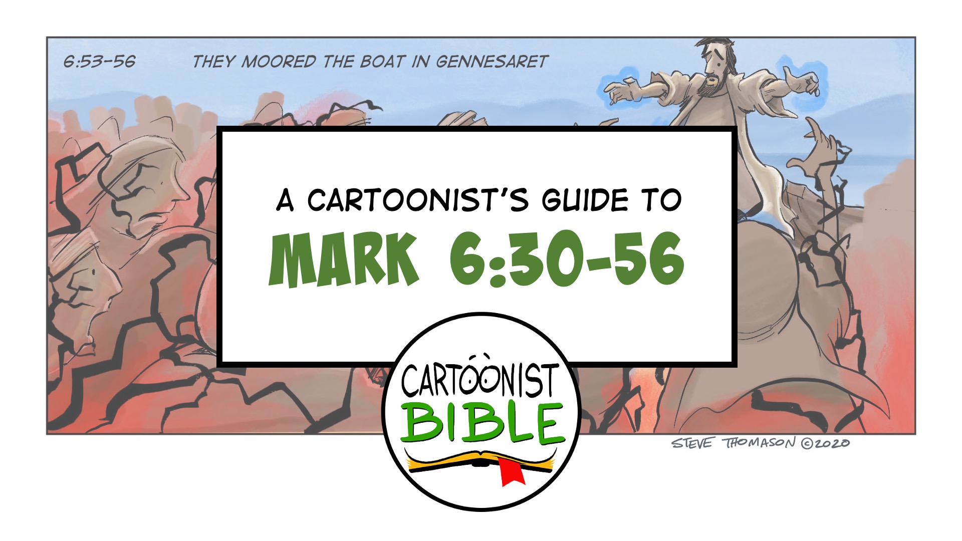 Here is A Cartoonist’s Guide to Mark 6:30-56. It provides a visual guide to this passage. Download the PowerPoint and image pack to walk through the text in your preaching and teaching.