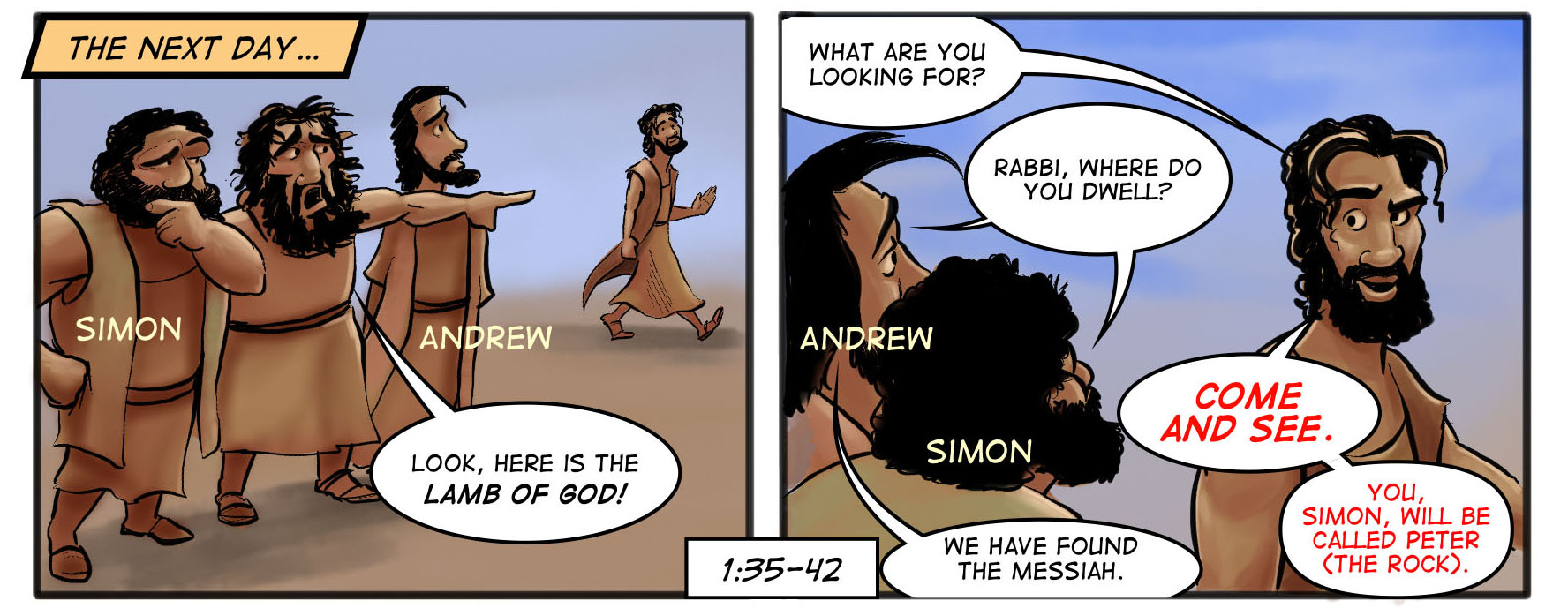 This post offers visual resources for the week of January 15, 2023 in the Revised Common Lectionary and the Narrative Lectionary. Jesus begins his public ministry this week. The Revised Common Lectionary takes us to John 1:29-42 where we see John the Baptist introduce his disciples to Jesus. The Narrative Lectionary continues in Matthew 4:1-17 and takes us into the wilderness where Jesus is tempted and then to Capernaum where Jesus takes up the mantle of John’s preaching.