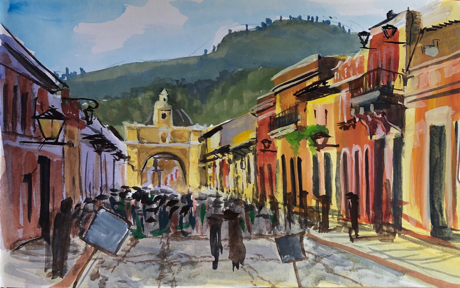 Please pray for me as I am in Guatemala from Jan. 29 – Feb. 11. My flight is scheduled for 8:00am tomorrow. The first week of my trip will be spent in Antigua. I’ll be studying Spanish at La Unión Spanish School and staying with a family assigned by the school. It is a full immersion program. I’ll study for four hours each morning and then I hope to spend my afternoons doing plen air painting around this beautiful city. Stay tuned for the art gallery in March! The image above is one that I did there in 2019.