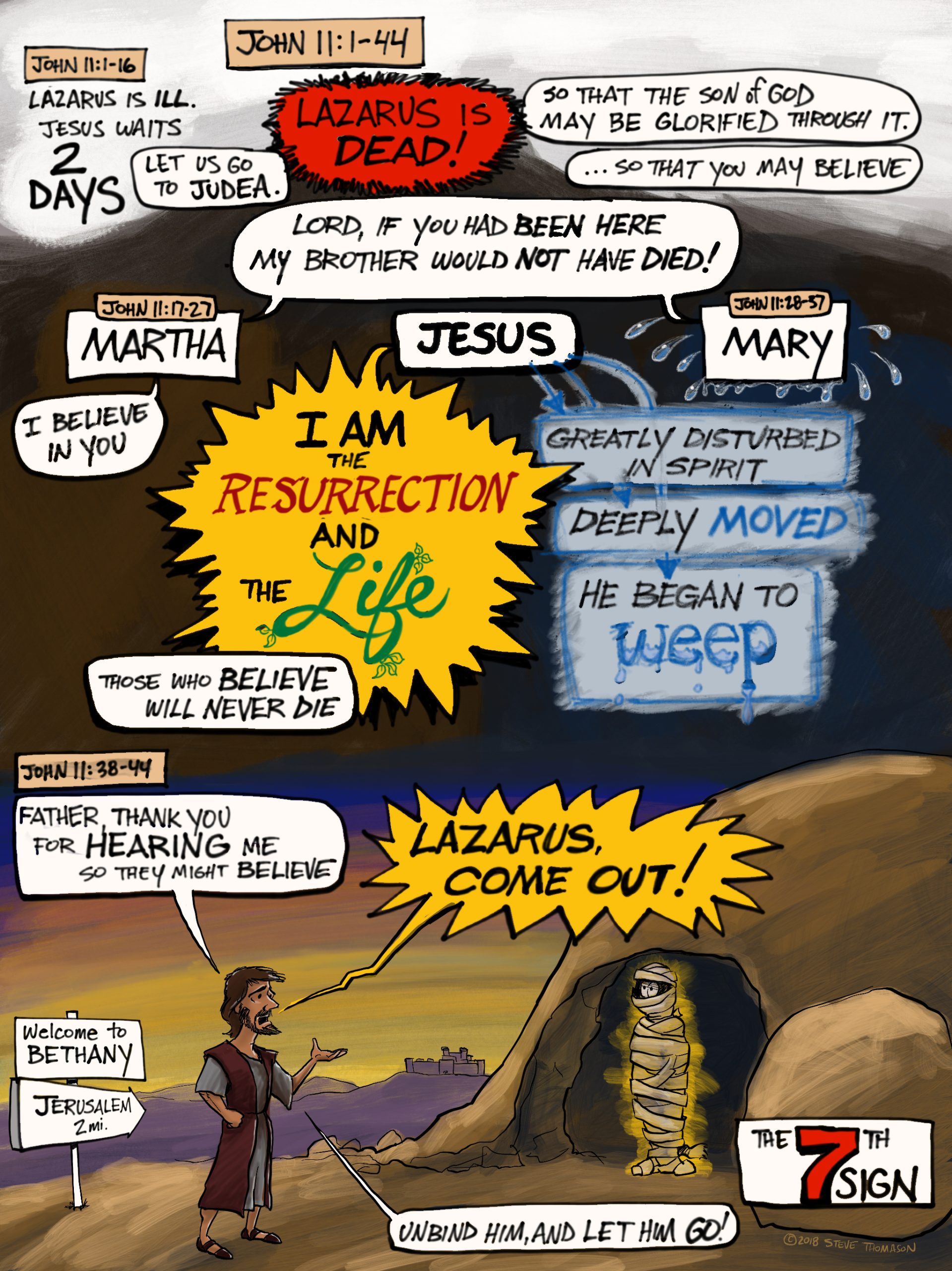 If you are paying close attention to the text of John 11:1-44 and comparing it to the page above, then you might have some big questions. The text shows two distinct conversations. The first is between Jesus and Martha. The second is between Jesus and Mary.