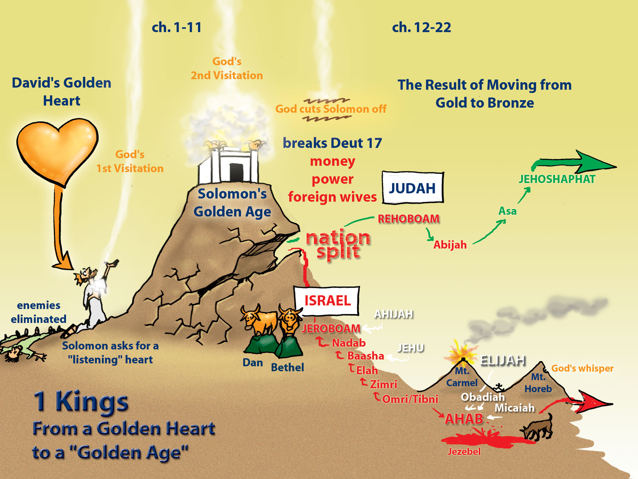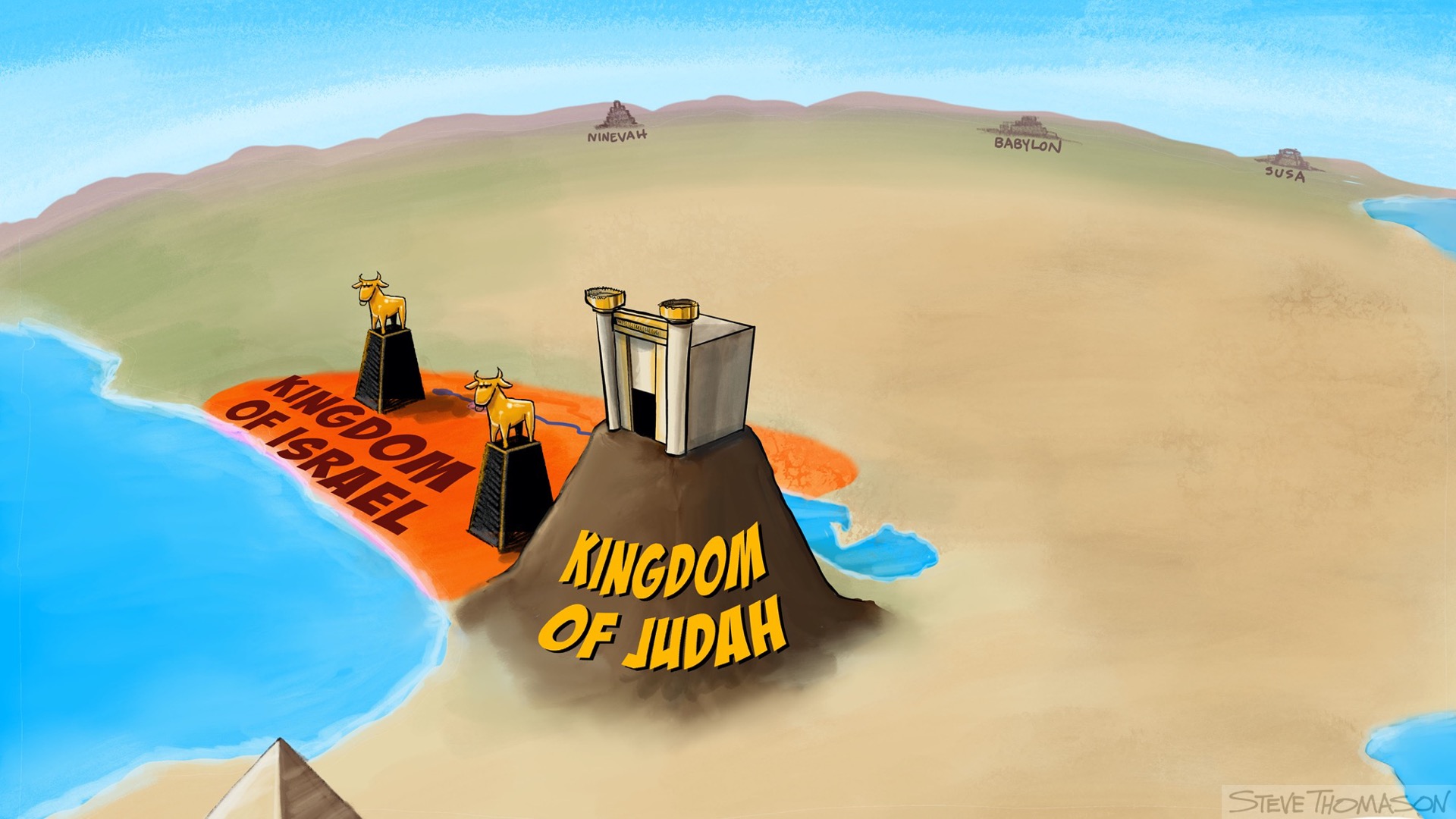 The NL jumps from David’s unification of the Kingdom last week to his grandson Rehoboam’s division of the kingdom this week in 1 Kings 12:1-17. It will be important to tell the story of how Solomon built the wealth and power of the kingdom, along with the Temple, through the over-taxation and servitude of the people and breaking all the laws regarding a king in the Laws of Moses. Rehoboam doubles down on tyranny and the kingdom is irreparably divided.