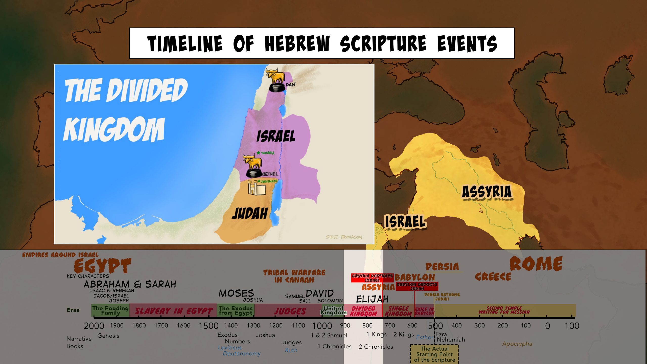 This post offers visual resources for the Revised Common Lectionary and the Narrative Lectionary for October 29, 2023. The RCL jumps to the end of Deuteronomy and the death of Moses. The second reading is Leviticus 19 where Jesus gets his “and the second is like it.” The third reading marks the second week in 1 Thessalonians. The Gospel is Matthew 22:34-46 where Jesus is asked about the greatest commandment. The NL explores the story Rehoboam and Jeroboam in 1 Kings. The Gospel reading in Mark 10:42-45, the Transfiguration. I titled this post “A Divided Kingdom” primarily because of the NL reading. However, Jesus’ naming of the greatest commandments, centered on Love, is what divides loyalties.