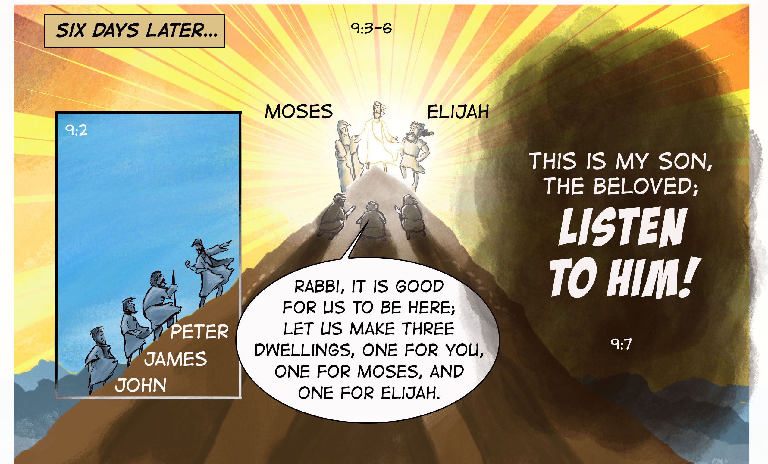 This post offers visual resources for the Revised Common Lectionary and the Narrative Lectionary for October 29, 2023. The RCL jumps to the end of Deuteronomy and the death of Moses. The second reading is Leviticus 19 where Jesus gets his “and the second is like it.” The third reading marks the second week in 1 Thessalonians. The Gospel is Matthew 22:34-46 where Jesus is asked about the greatest commandment. The NL explores the story Rehoboam and Jeroboam in 1 Kings. The Gospel reading in Mark 10:42-45, the Transfiguration. I titled this post “A Divided Kingdom” primarily because of the NL reading. However, Jesus’ naming of the greatest commandments, centered on Love, is what divides loyalties.