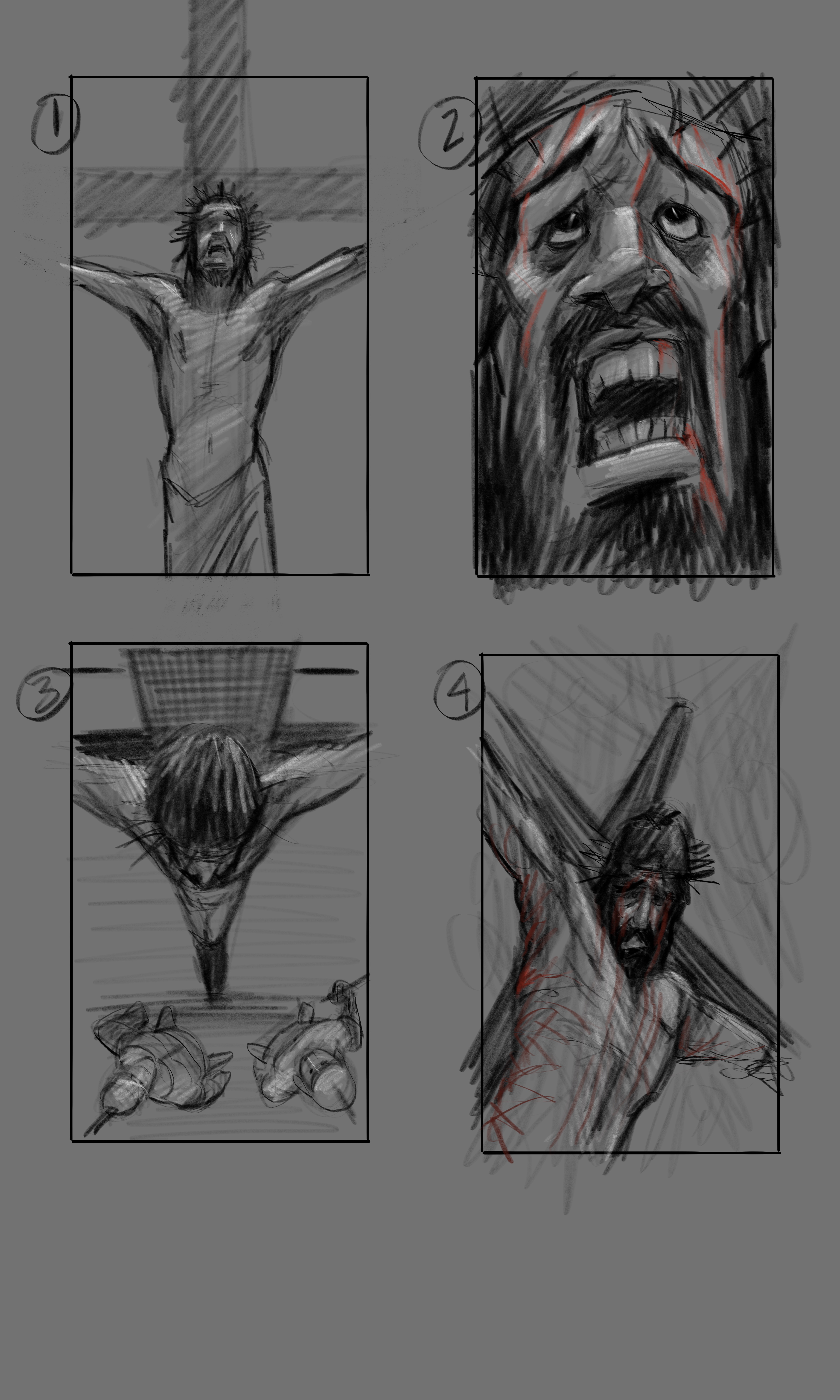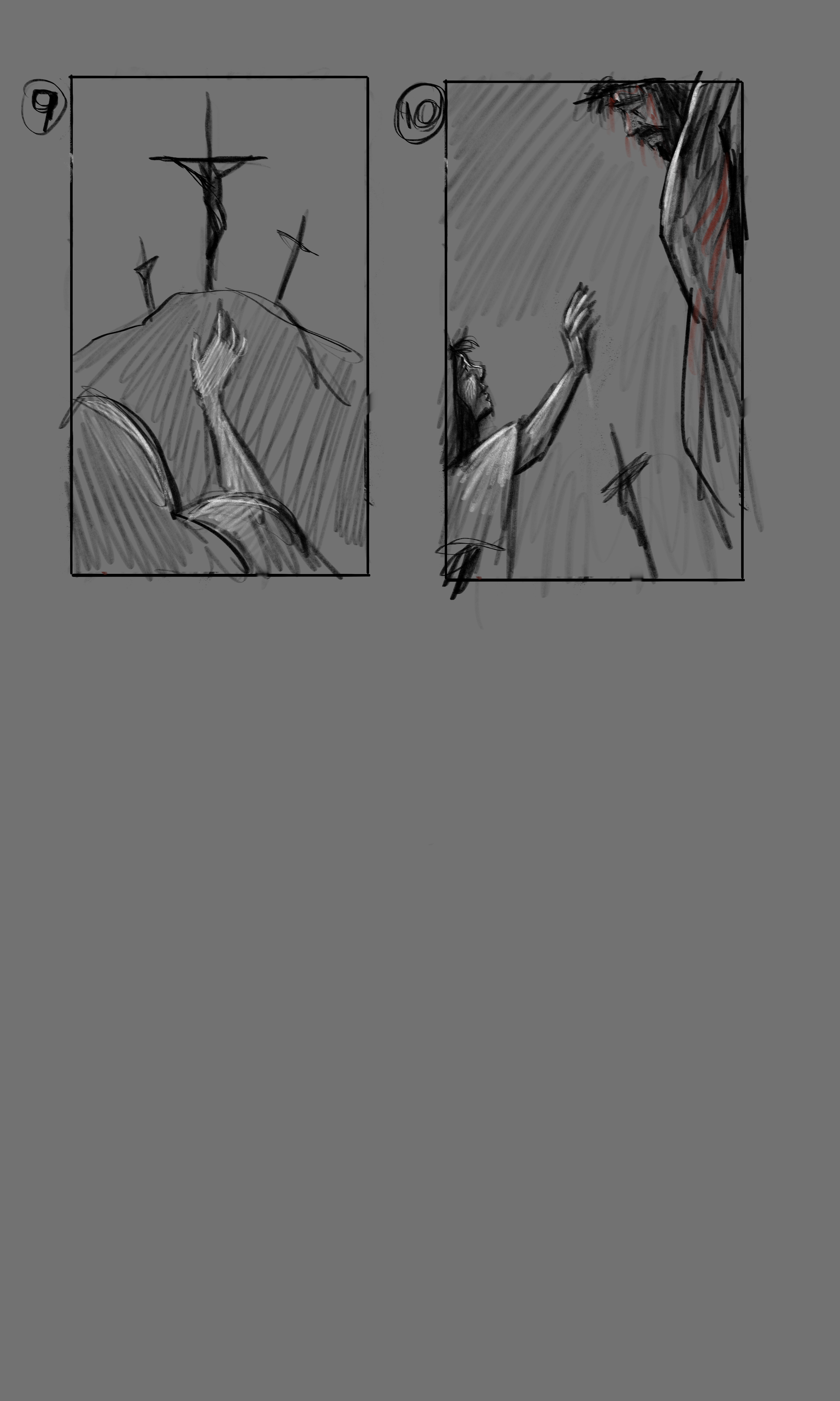 Pastor Kris invited me to do live art during the Good Friday Service at Nokomis Heights Lutheran Church. I sent her these ten thumbnail sketches. She chose number seven.