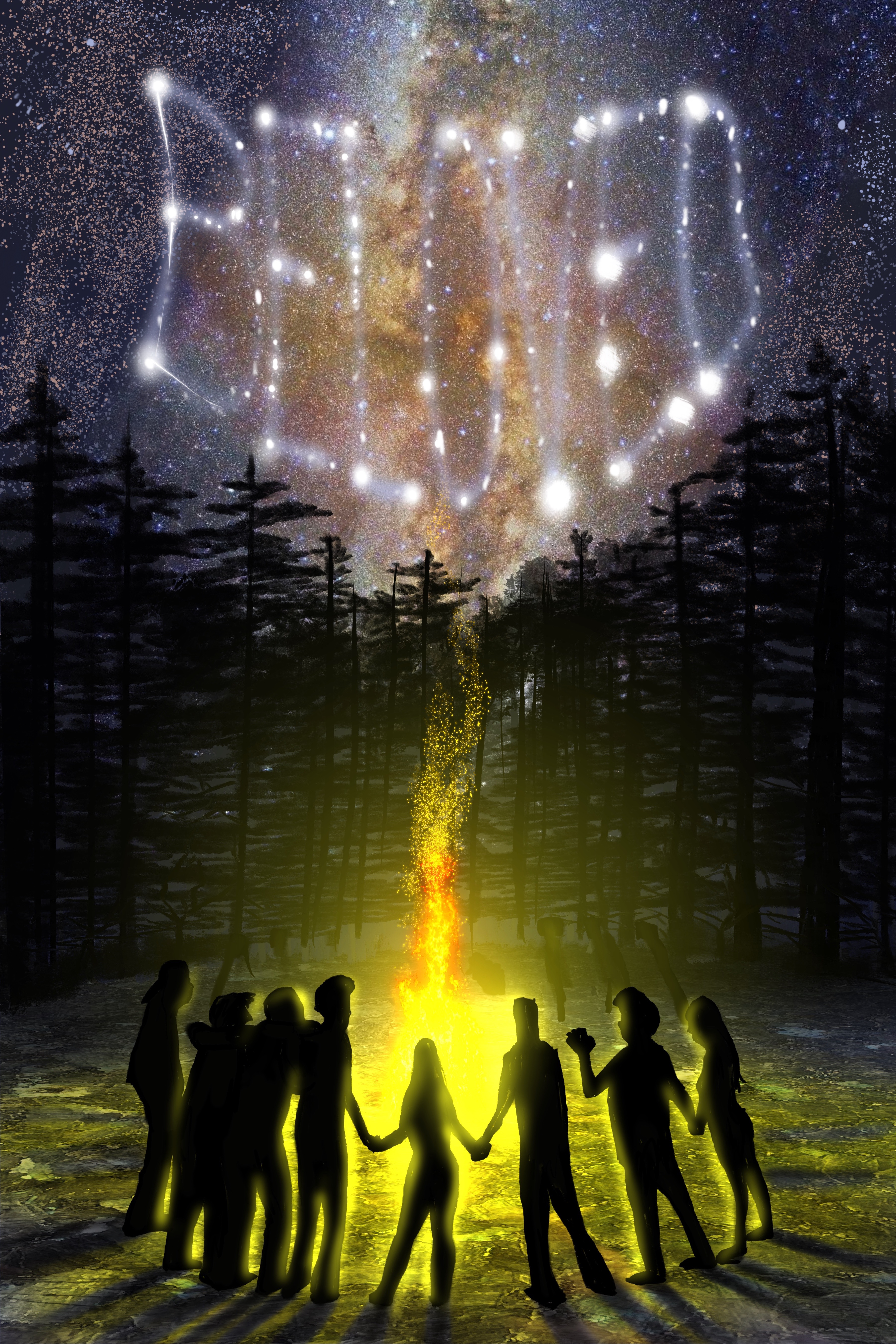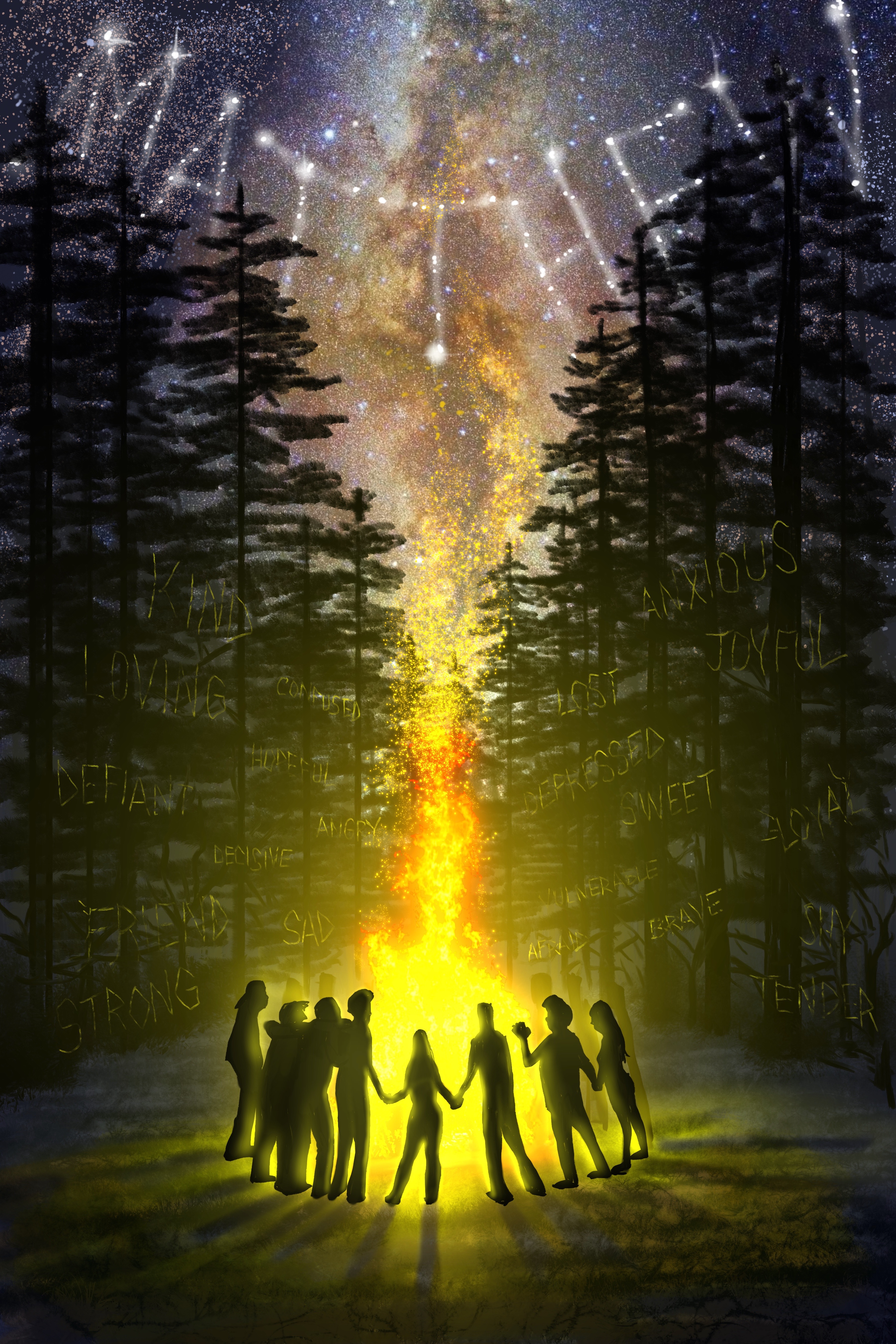 There had been an image percolating in my mind for a few weeks prior to their request. So, when they had no specific image in mind, her words wrapped themselves around this image. I created the following thumbnail sketches in Procreate and presented them to the family. Click the image to enlarge.