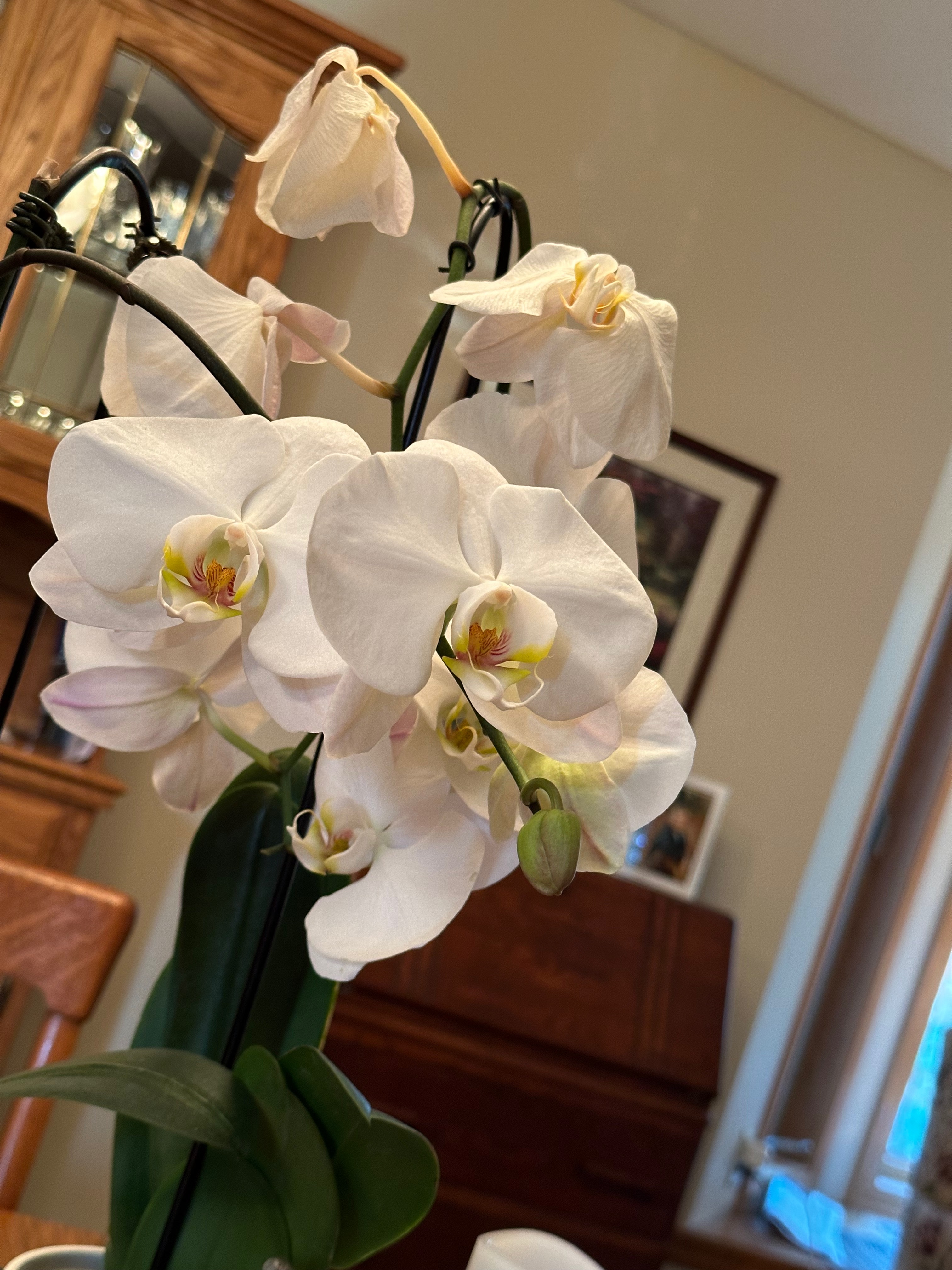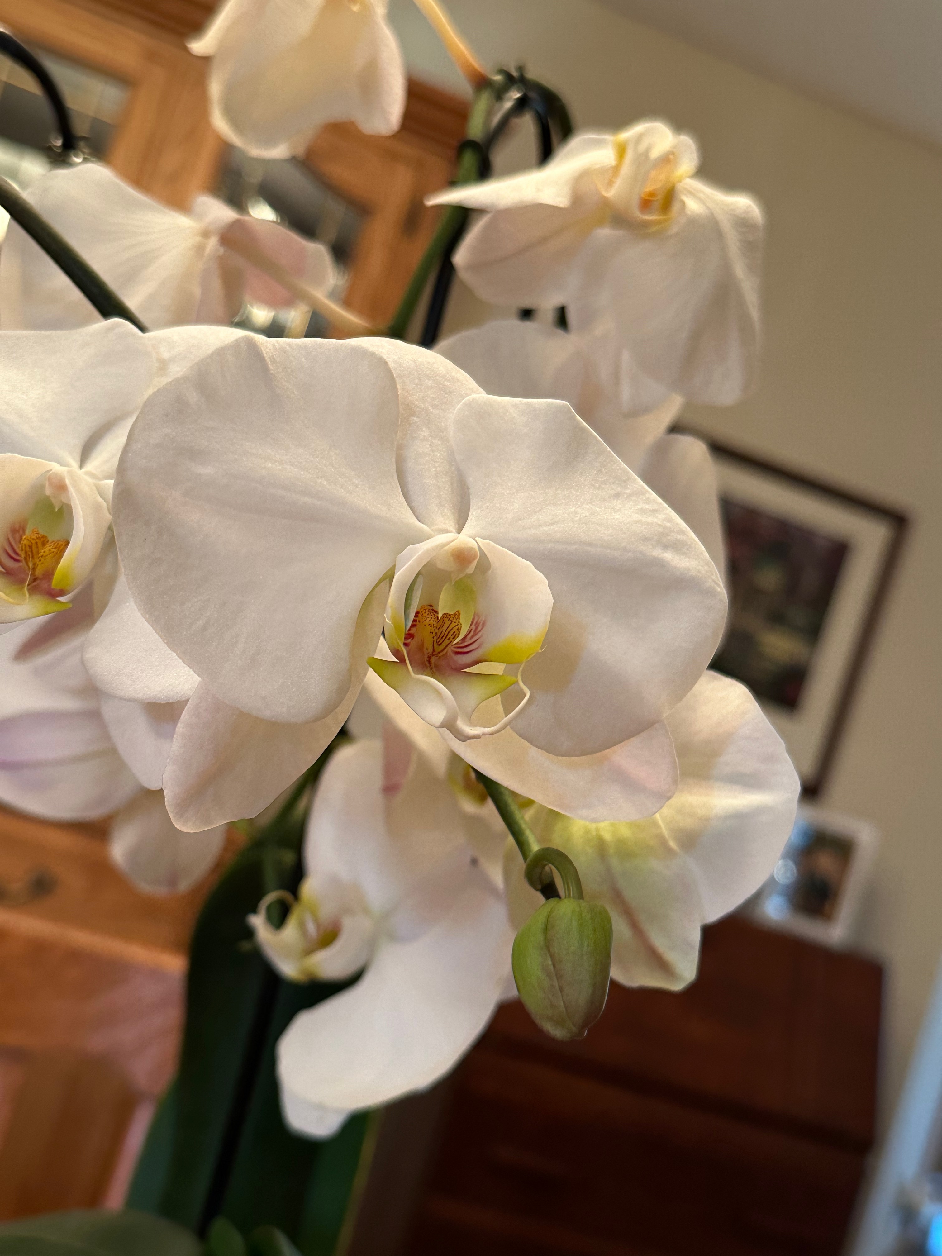 Someone had given them some white orchids when their son died. The family had me visit their house and hang out with their son’s group of friends one day last summer. I took a bunch of photos of the orchids that day.