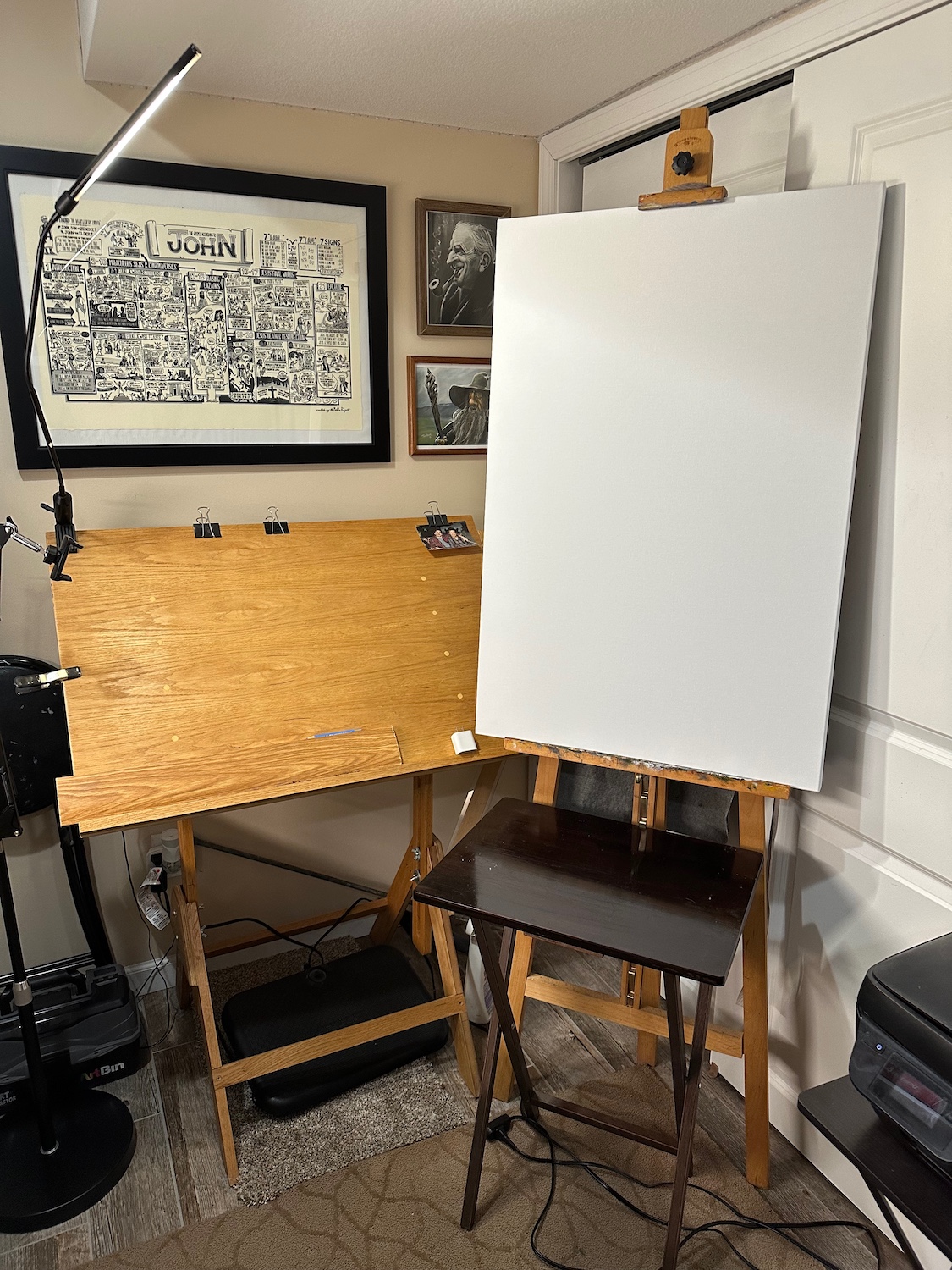 I’ve spent most of my artistic career as an illustrator. I have the ability to draw and paint anything I see. So, a person who cannot draw will hire me to create a very specific image to serve their purposes. They know what they want. I can see it in front of me. I draw it. They make some tweaks. I finish the image. Boom! It’s done.
