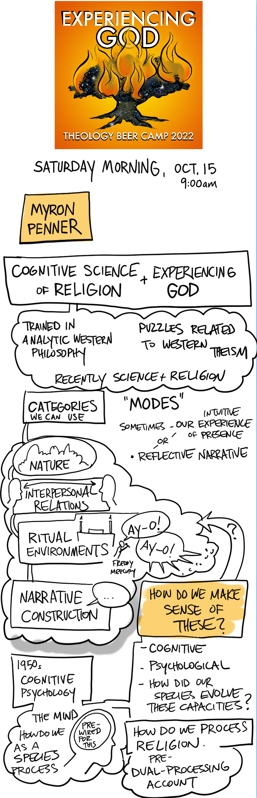 I took live visual notes on my iPad at Theology Beer Camp, October 13-15, 2022 in Chapel Hill, North Carolina. The iPad was connected to a 70″ TV monitor so the audience could watch the notes emerge as I drew them during the lecture.