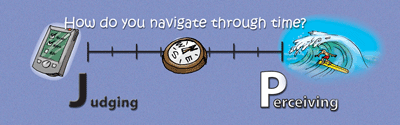 Perceivers see life as a surfing expedition. There is no telling what will happen next, so why plan? Perceivers want to live life in a spontaneous sense of adventure. When they are free to react to life as it comes, then there is a sense of freedom and peace.