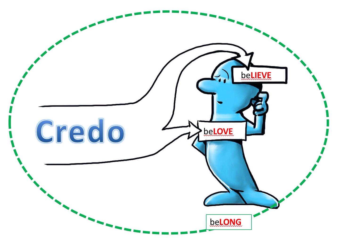The word creed, or credo, is Latin. We translate it I believe in English, but it means so much more. To believe, in our culture, means to agree with our intellect that something is true. Credo, however, encompasses more than the mind. It means that we love with the heart and we belong with our whole being. Credo is to believe, belove, and belong. See this review for more…